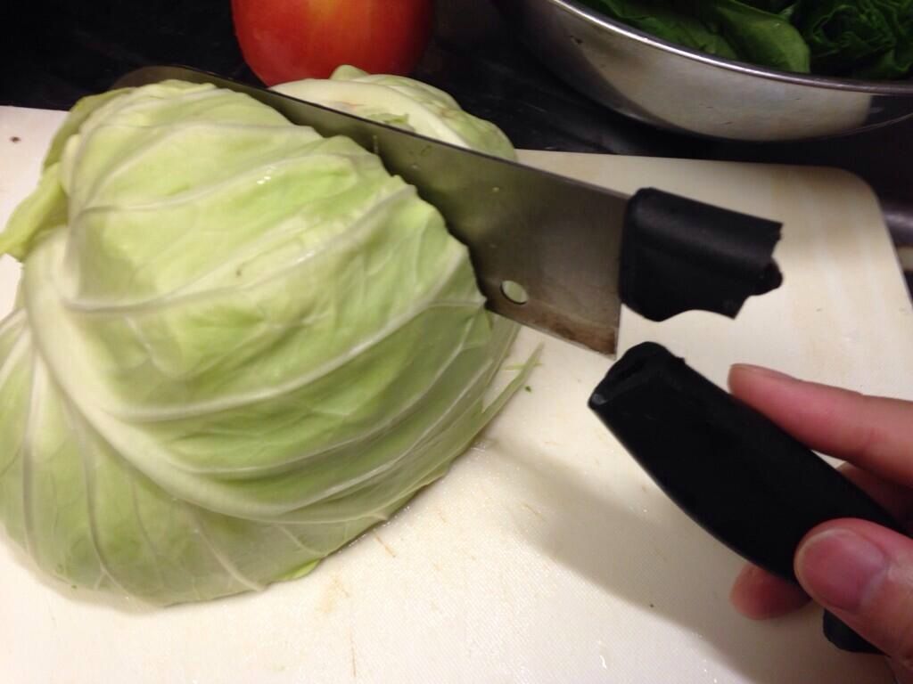 切ってたキャベツの脳天に包丁をドスッとおもいっきり突き立て、